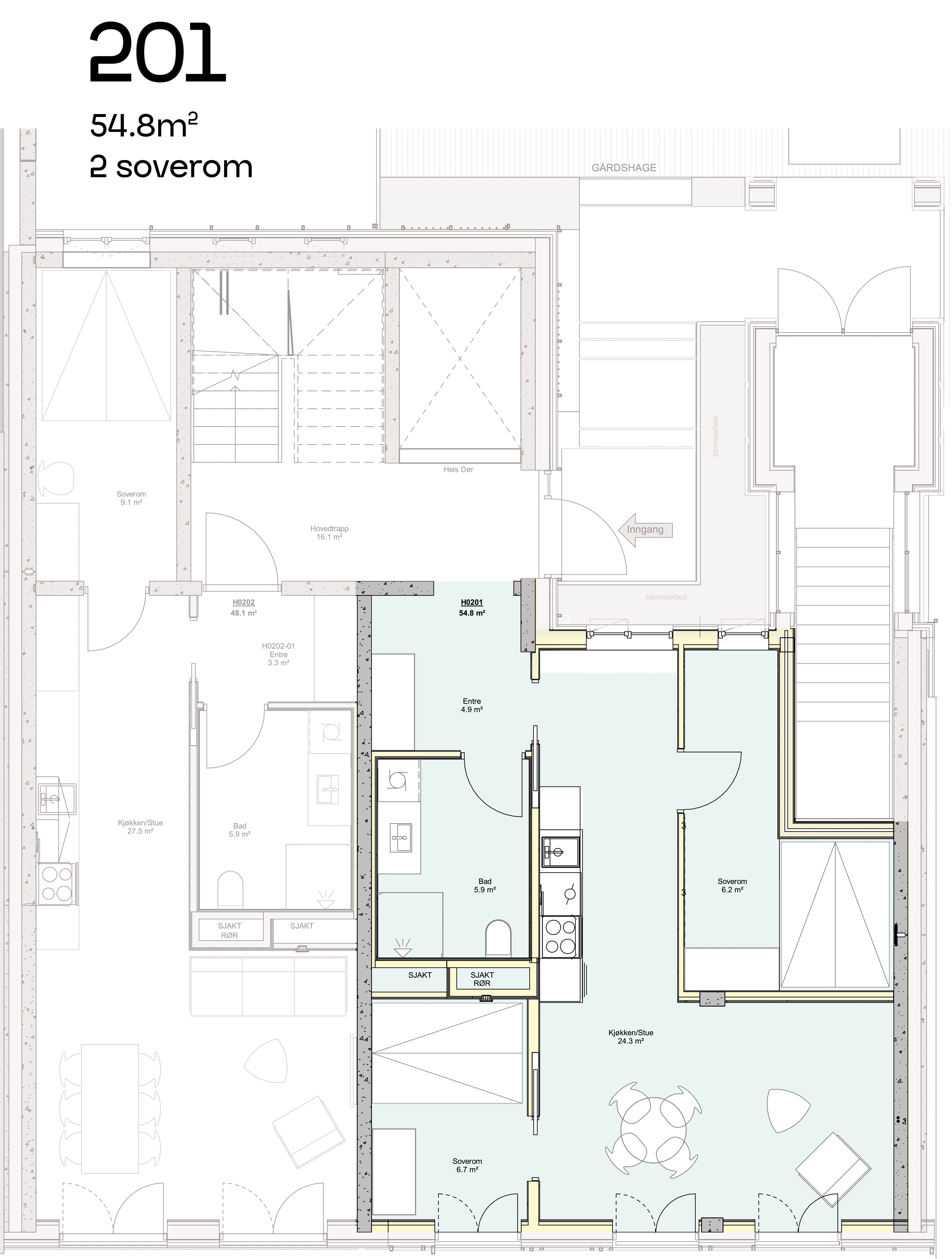 Scroll nedover for å lese mer om de ulike leilighetstypene og finn din leilighet.