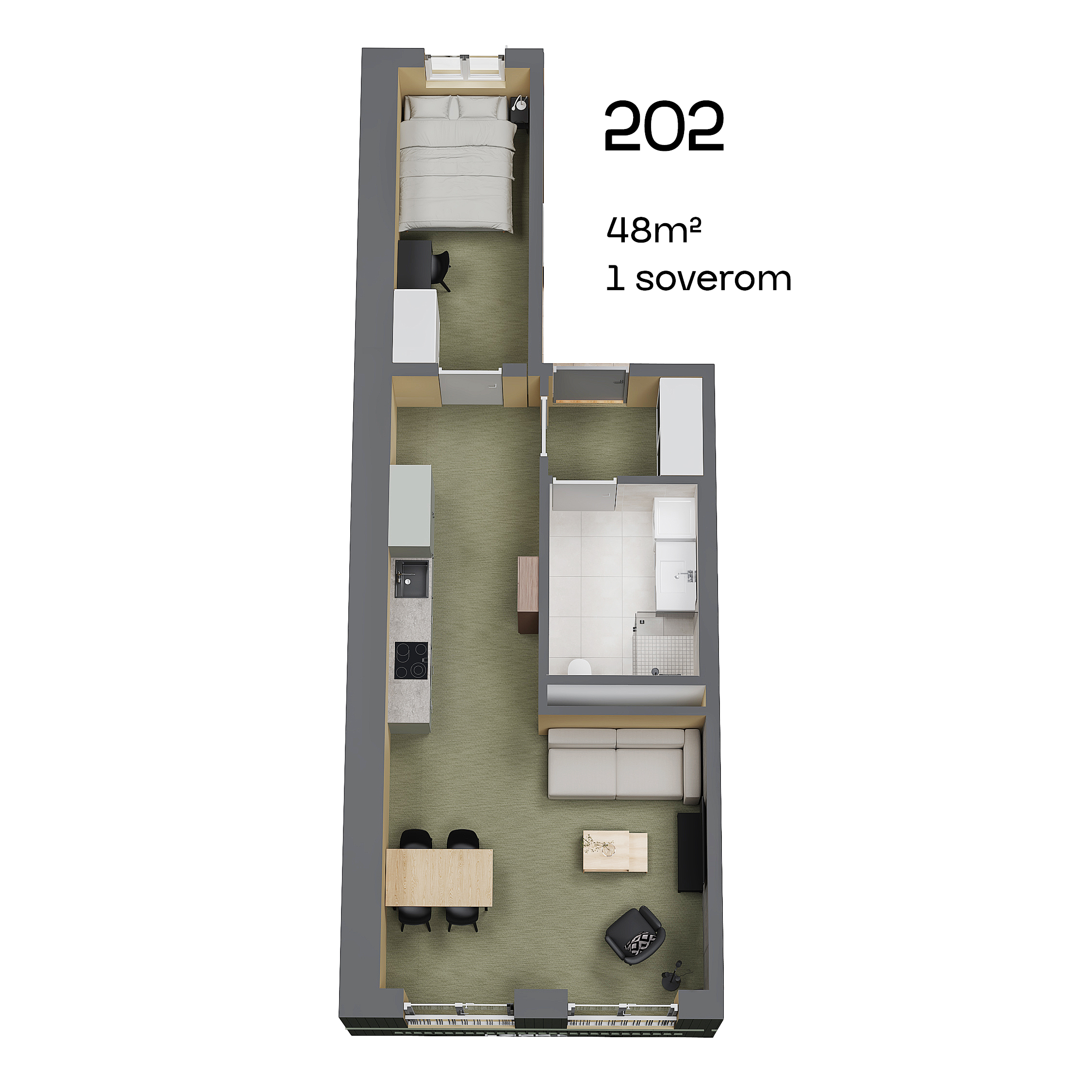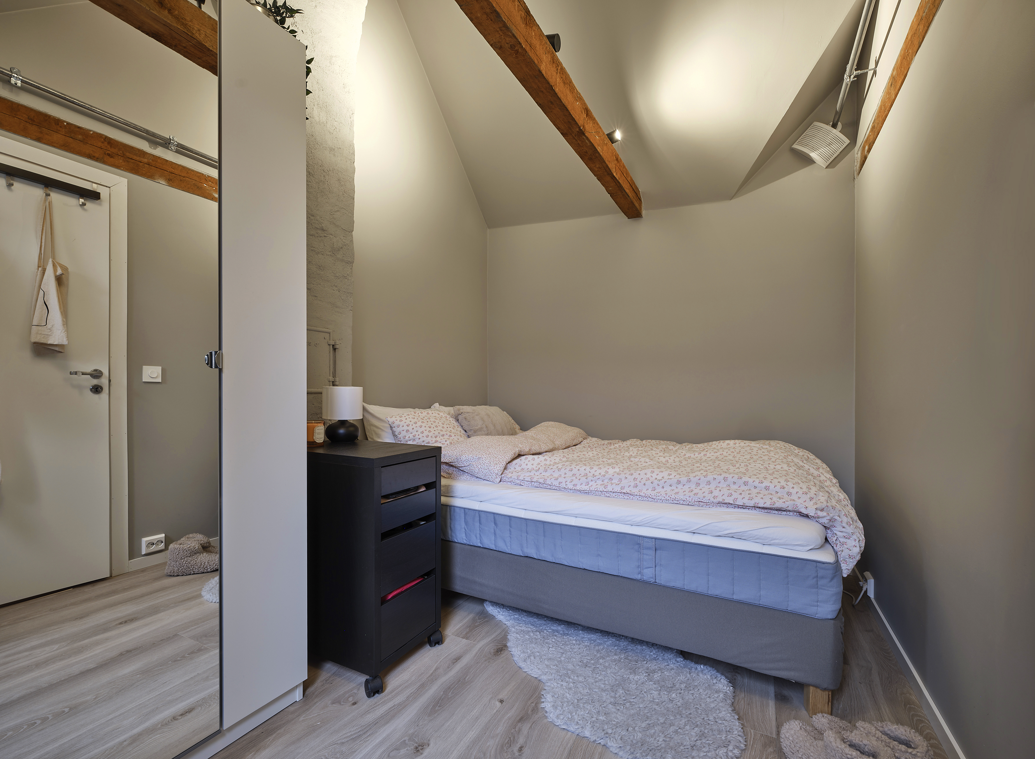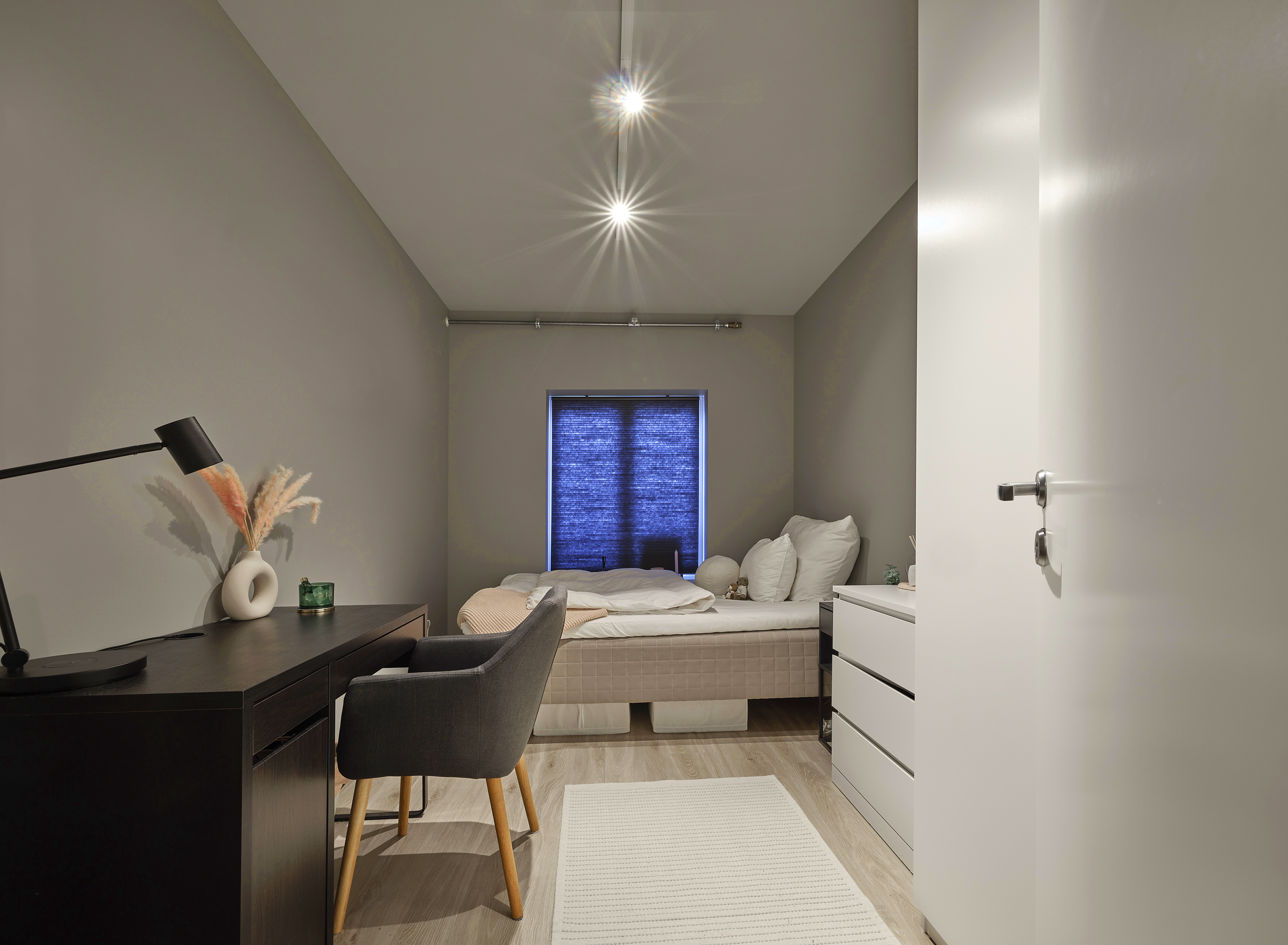 Leilighetene er designet med tanke på både funksjonalitet og stil, men kanskje best av alt er de møblert med alt du trenger for å flytte rett inn. Her snakker vi om splitter nye senger, sofa, garderobe og vaskemaskin. Hvor fantastisk er ikke det? Her har vi hatt fokus på at det skal være enkelt for deg som student å bo. Derfor får du også sykkelparkering i kjelleren, som du har direkte tilgang til med heis.