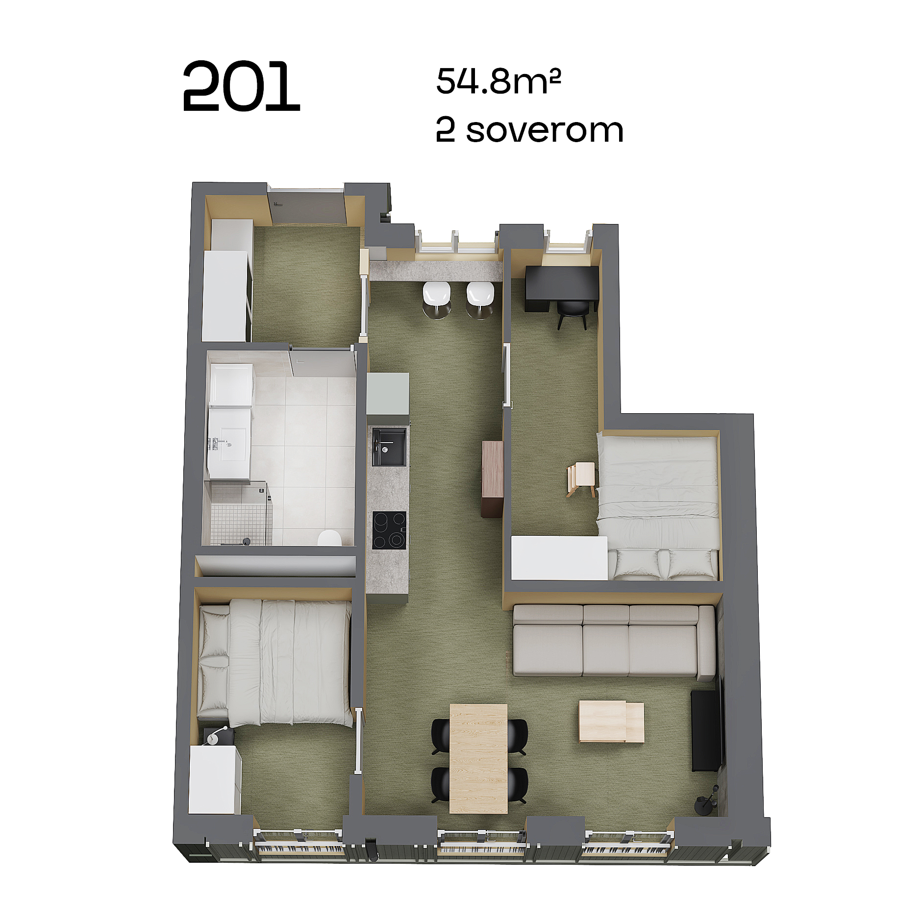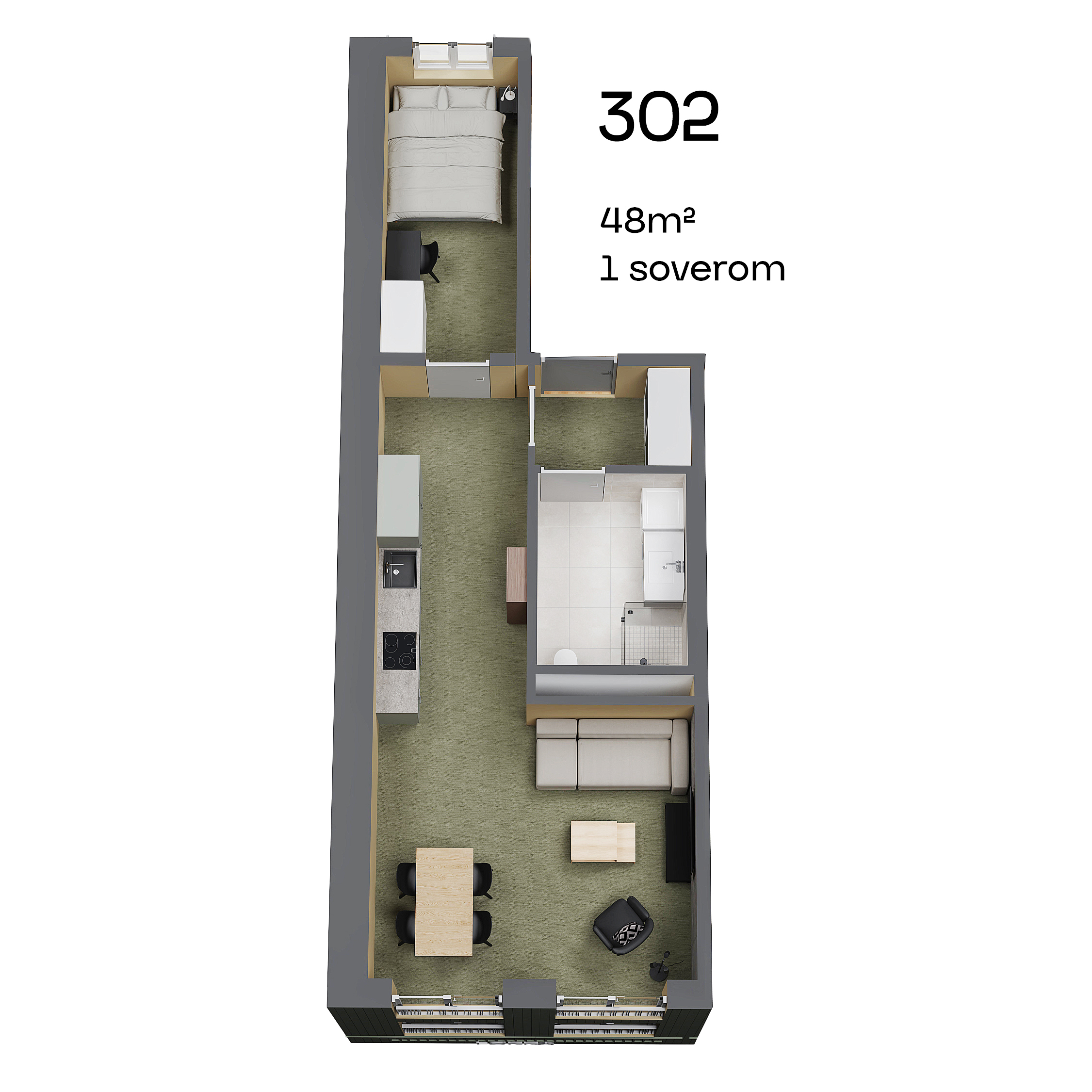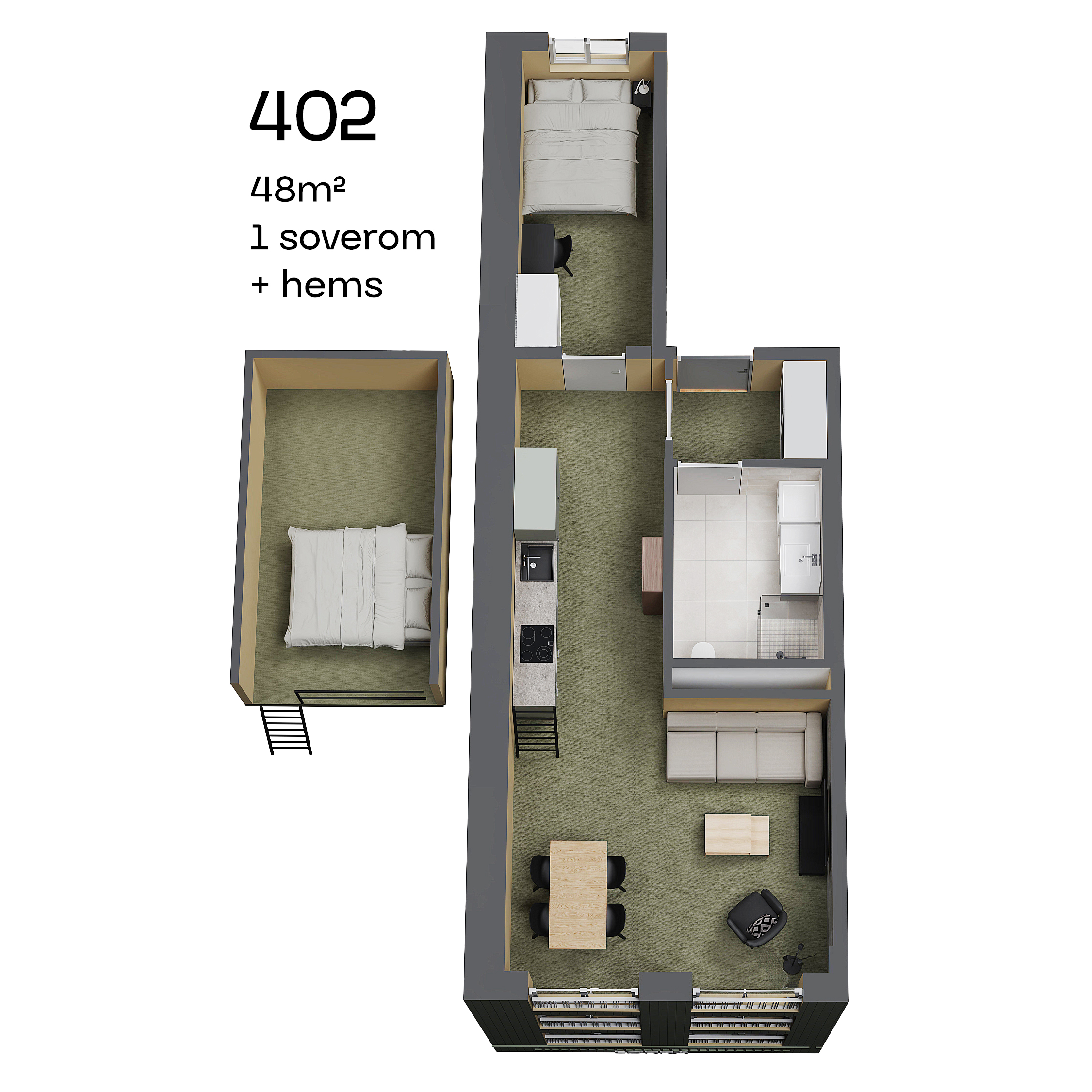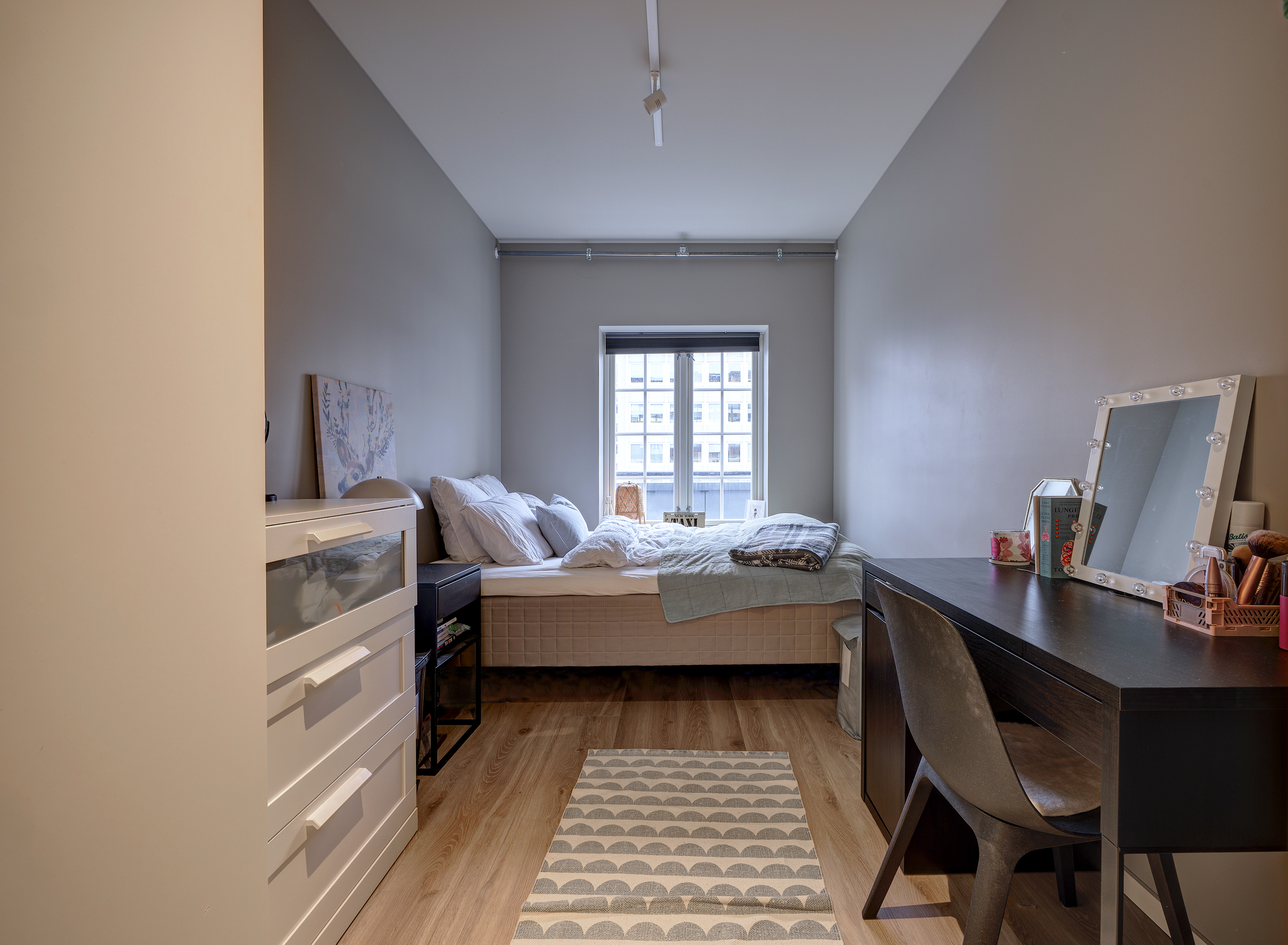 Leilighetene er designet med tanke på både funksjonalitet og stil, men kanskje best av alt er de møblert med alt du trenger for å flytte rett inn. Her snakker vi om splitter nye senger, sofa, garderobe og vaskemaskin. Hvor fantastisk er ikke det? Her har vi hatt fokus på at det skal være enkelt for deg som student å bo. Derfor får du også sykkelparkering i kjelleren, som du har direkte tilgang til med heis.