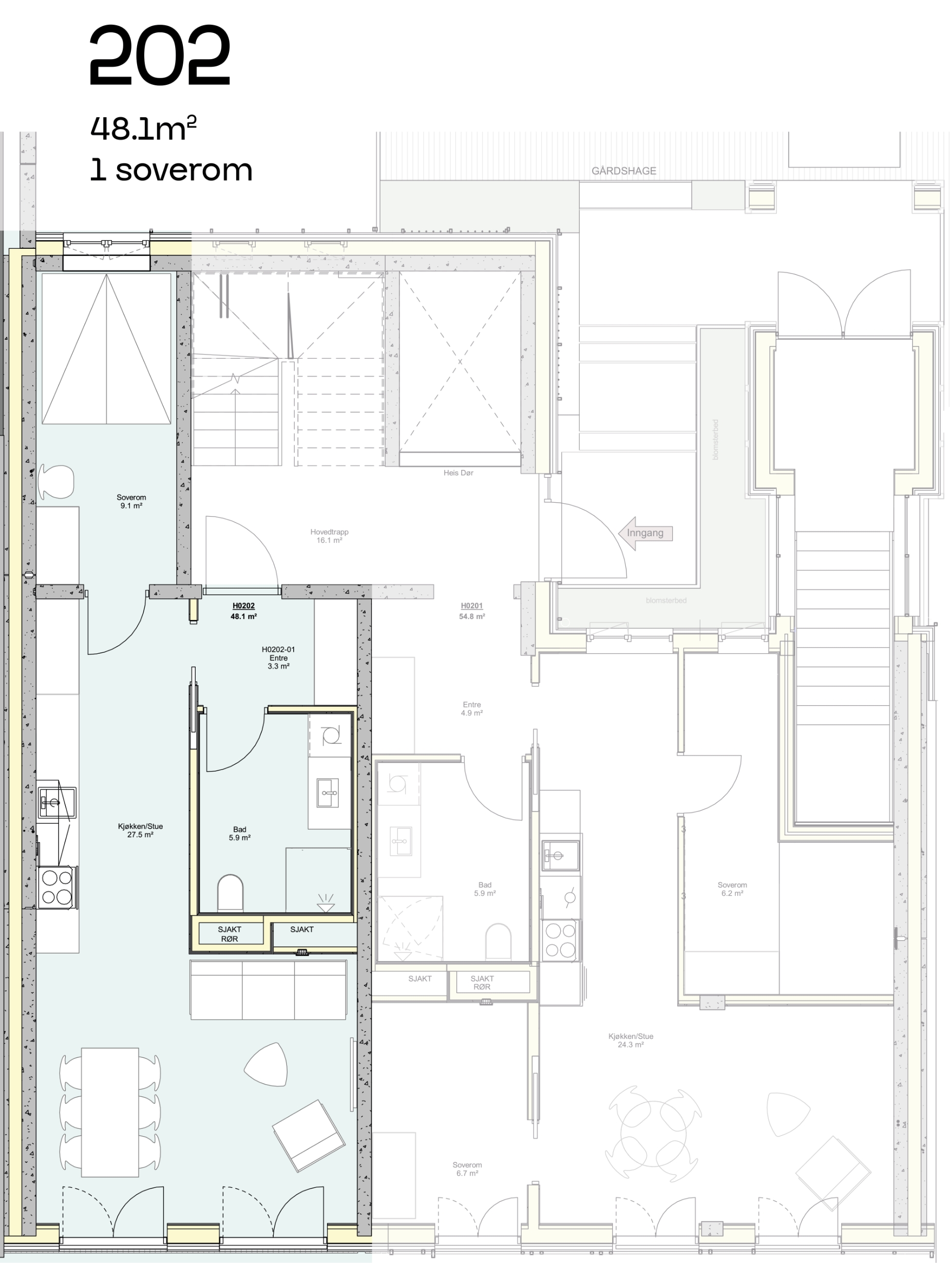 Scroll nedover for å lese mer om de ulike leilighetstypene og finn din leilighet.